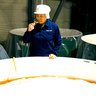 <酵母が葡萄の糖を上手に食べ発酵環境に気を遣います>