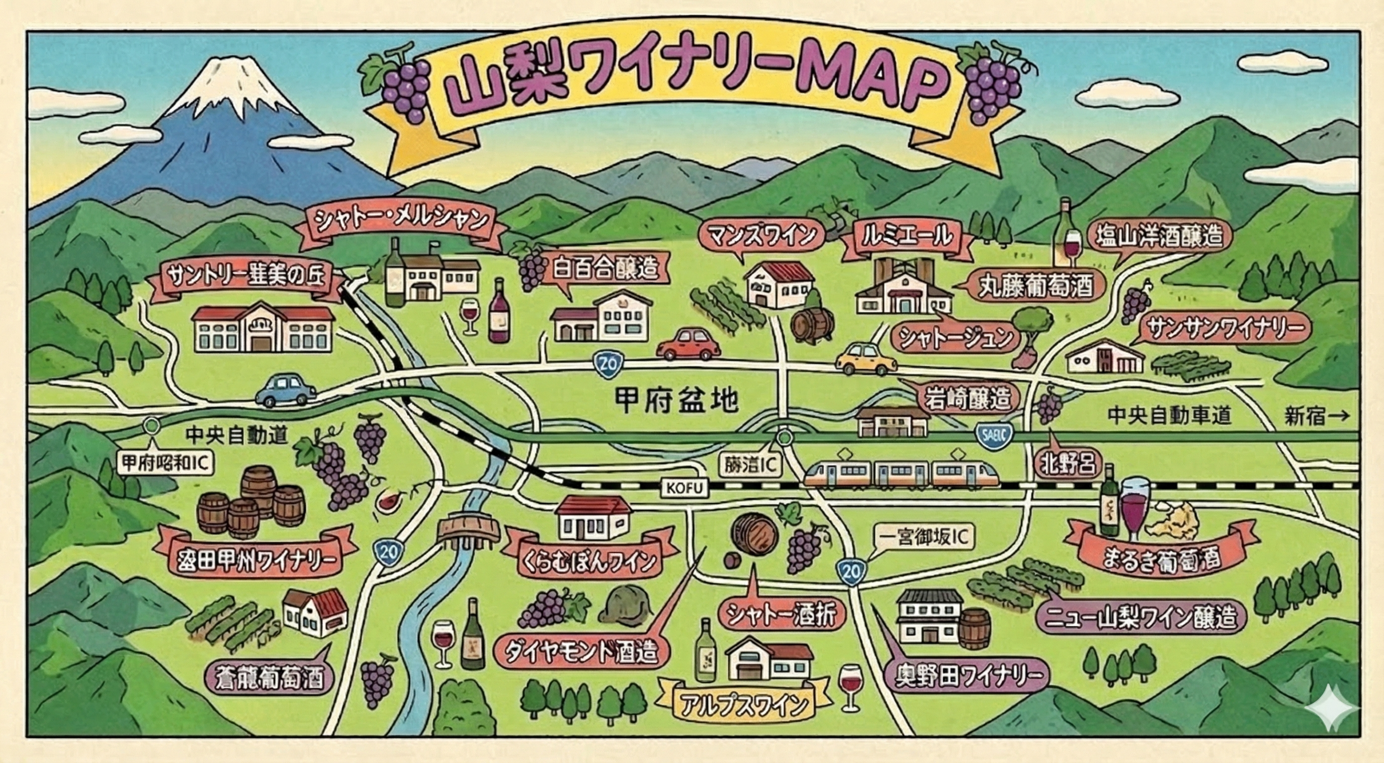 山梨に根付くたくさんの小さなワイナリーでは、赤白スパークリング、新酒から熟成酒など様々なユニークさを持っています。