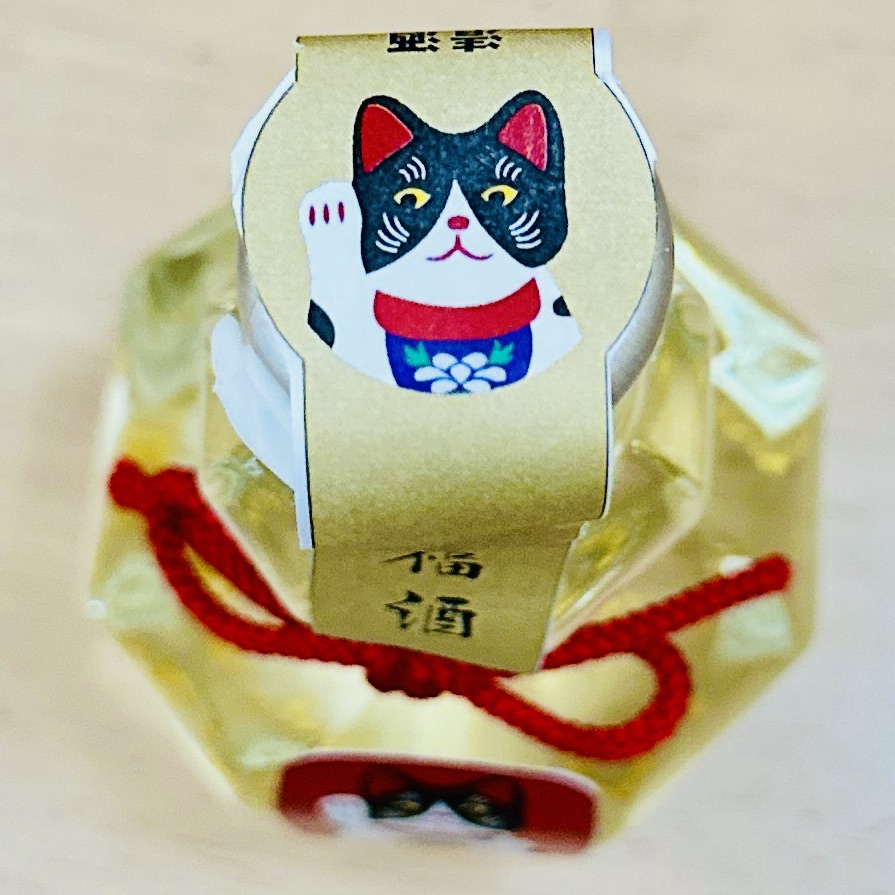 招き猫の伝説を持つ太田道灌を祖にする道灌銘柄で有名な「太田酒造」(滋賀)の、特製縁起物ひょうたん型ボトル180mlに入った、金箔入り本醸造酒です。